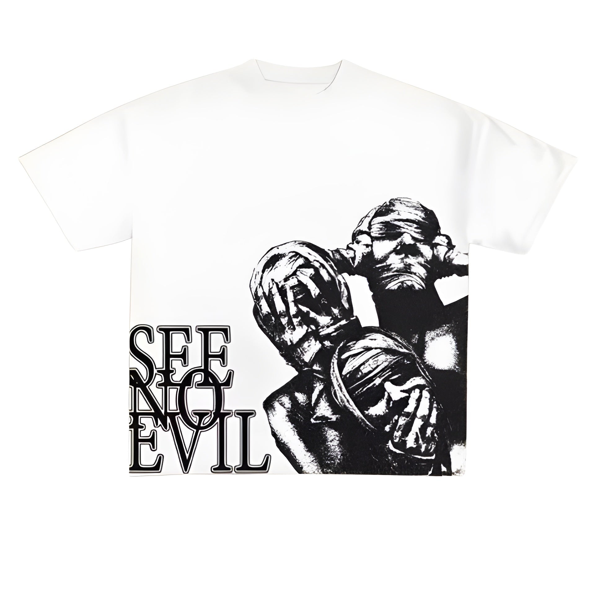 Bold streetwear with a message. The See No Evil Tee features a striking graphic print and a relaxed fit, making it the perfect piece to add an edge to your everyday look. Pair it with jeans or cargos for an effortless urban vibe.