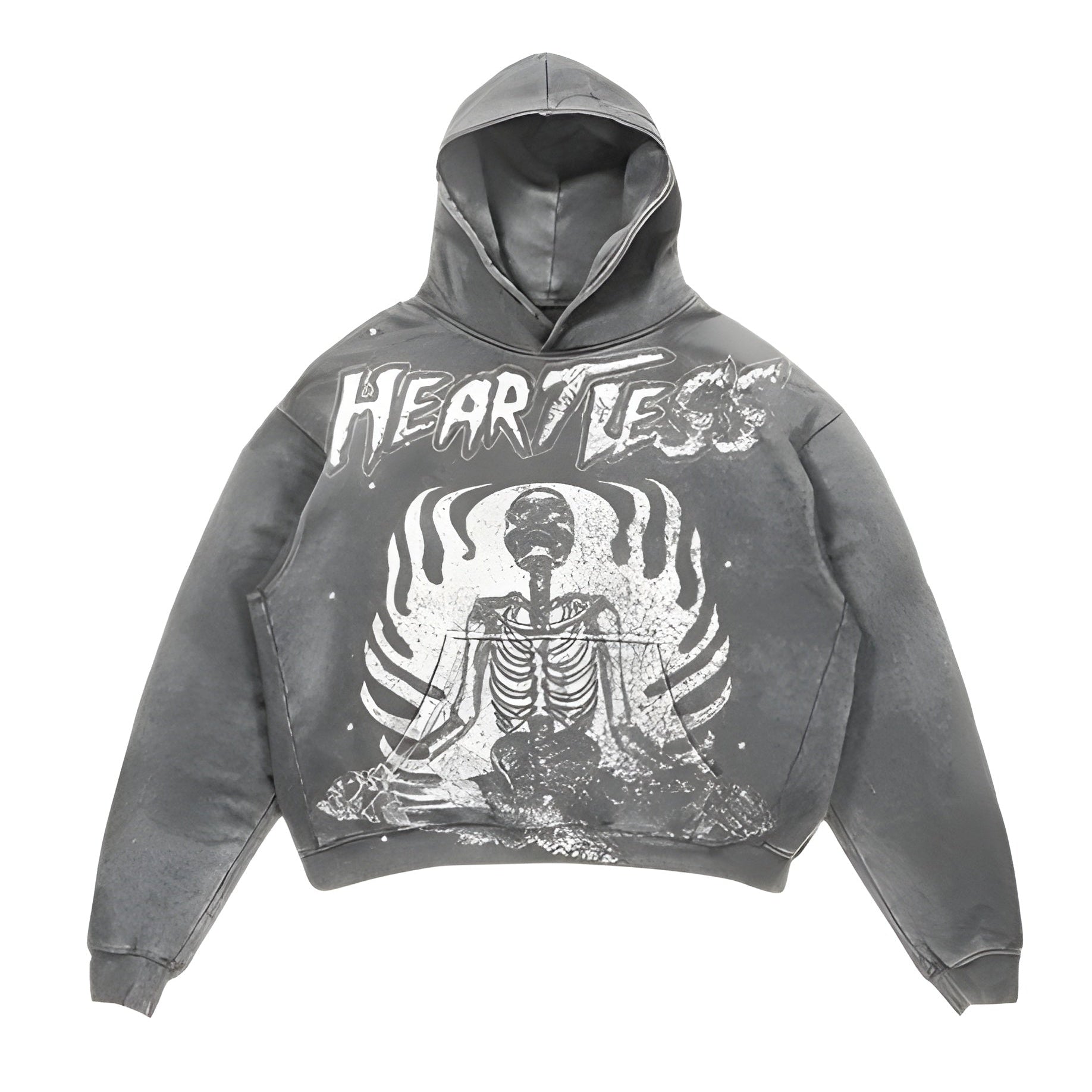 Stand out with this oversized hoodie featuring bold skull graphics and a vintage washed look. A must-have for punk-inspired streetwear fits.